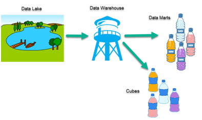 “If you think of a datamart as a store of bottled water – cleansed and packaged and structured for easy consumption – the data lake is a large body of water in a more natural state. The contents of the data lake stream in from a source to fill the lake, and various users of the lake can come to examine, dive in, or take samples.” (Dixon, 2010)