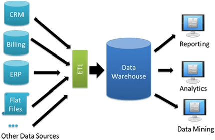 Data Warehouses also solve the problem of trying to derive information when there are too many sources, e.g. a multinational with thousands of store locations and subsidiaries, by creating a “single source of truth”. Effectively this means pulling all the information to one central location, transforming the data for uniformity and storing like for like data together. For example this could mean gathering all sales data from multiple locations and converting the currency to dollars. All of the data in one place together allows for different sources, which serve different purposes, to be combined via a single query. For example a report that links sales data and logistical data, coming from POS and SCM systems respectively, may not be possible with a single query if the systems are not linked. If best practices regarding I.T. security are being followed they certainly should not be.